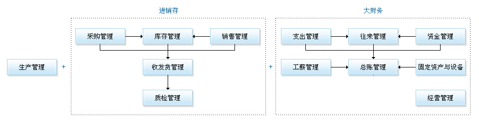 | 生产管理 | 采购管理 | 销售管理 | 库存管理 | 收发货管理 | 质检管理 |